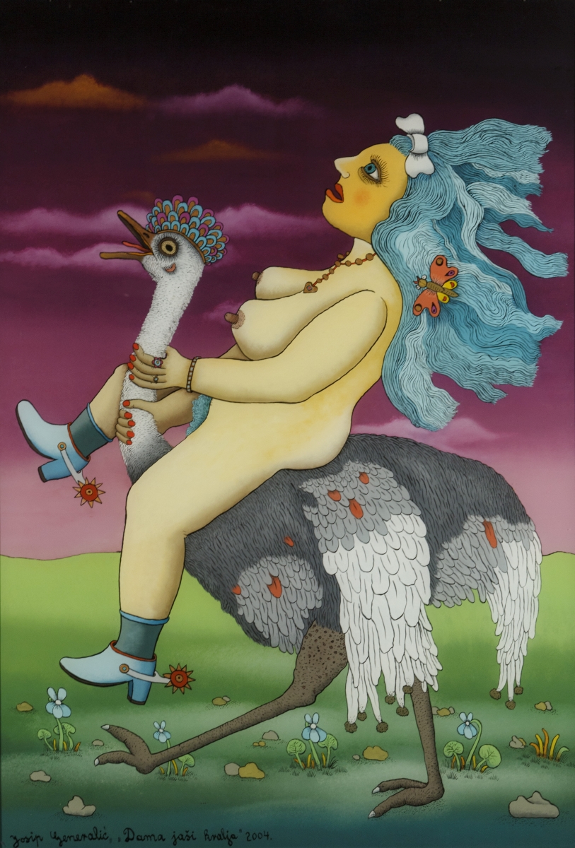 Josip Generalić Dama jaši kralja 70x100cm Ulje na staklu 2004
